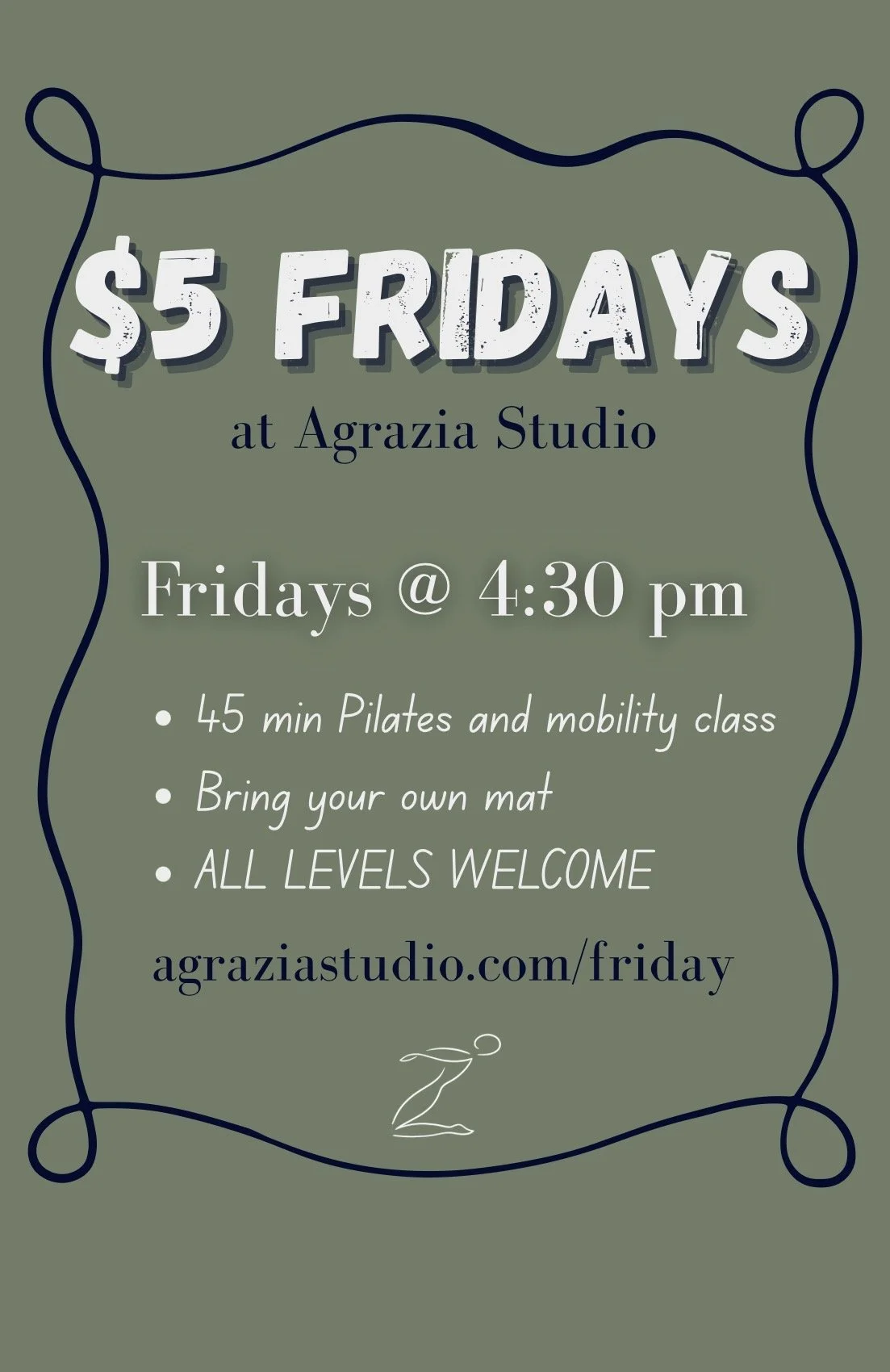 45 min Pilates class every Friday @ 4:30 pm